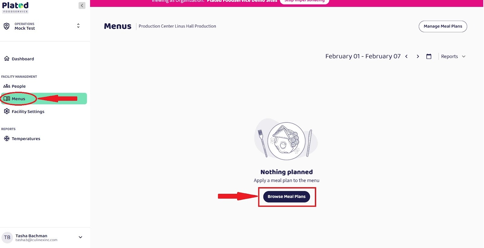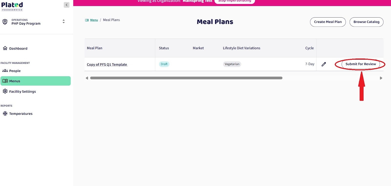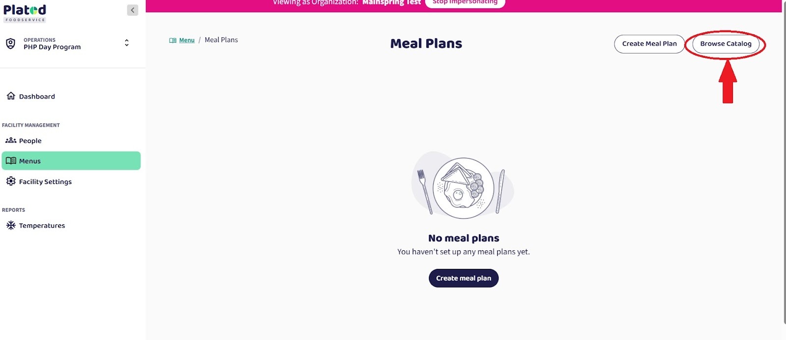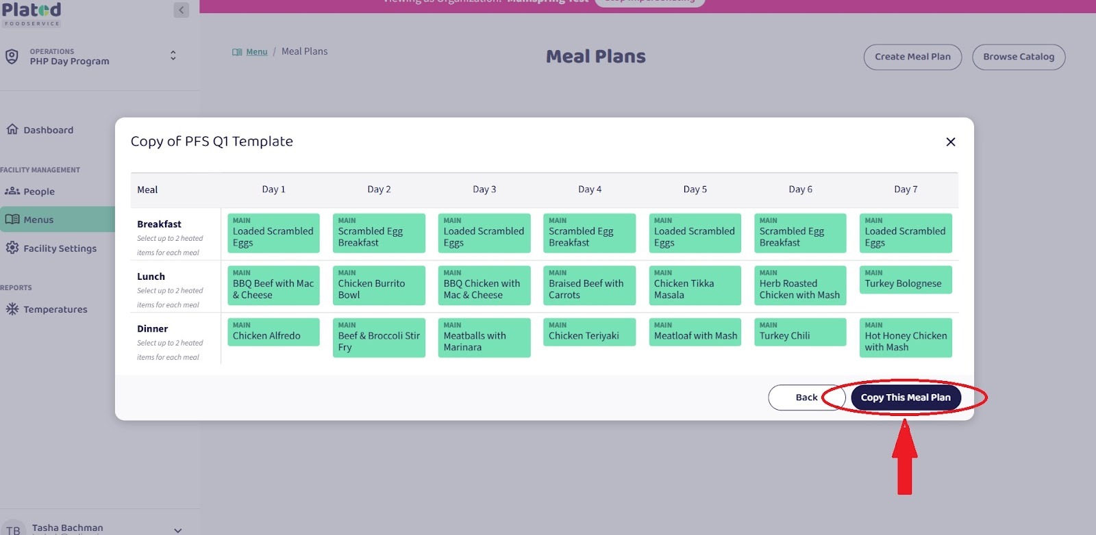 - Return to the Meal Plans list by clicking "Menus" in the navigation