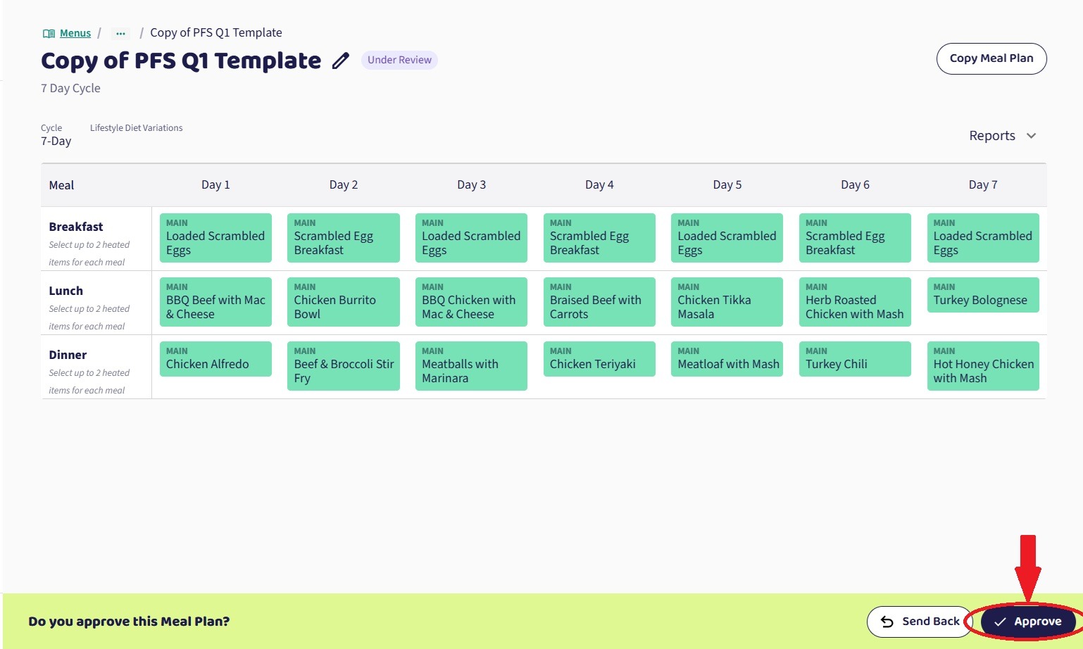 - At the bottom of the screen, you'll see: "Do you approve this Meal Plan?"